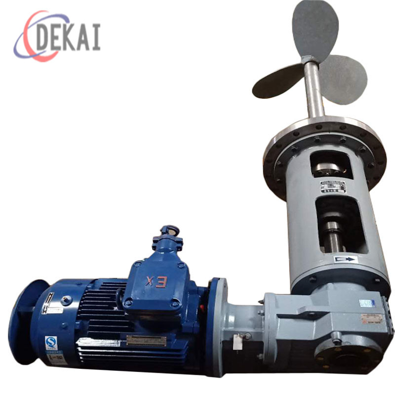 小直徑高轉(zhuǎn)速攪拌機的選型及使用:小直徑高轉(zhuǎn)速攪拌機的種類有兩種一種是推進式攪拌器、一種是渦輪式攪拌器。推進式攪拌器工作原理:工作時,推進式攪拌器如同一臺無外殼的軸流泵,高速旋轉(zhuǎn)的葉輪使液體作軸向和切向運動。液體的軸向分速度使液體沿軸向流動,流至釜底時再沿釜壁折回,并重新返回旋槳入口,從而形成總體循環(huán)流動,起到混合液體的作用。液體的切向分速度使液體在容器內(nèi)作圓周運動,這種圓周運動使釜處的液面下凹,釜壁處的液面上升,從而使釜的有|效容積減小。下凹嚴重時槳葉的甚至?xí)肟諝?,使攪拌效果機具下降。